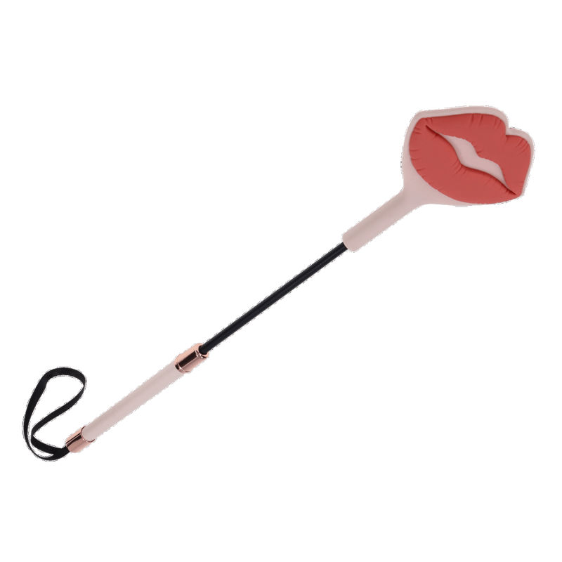 Seal the deal with a kiss they won’t forget. The Peaches ‘N CreaMe Kiss Crop features a soft, 100% silicone tip with a raised lip design that leaves a juicy kiss imprint with every well-aimed swat. The flexible yet firm tip delivers a sharp, satisfying sting that lingers on the skin and even longer in their memory. Adorned with gleaming rose gold accents and wrapped in peachy faux leather, the handle feels just as good in your grip as it looks. A matching wrist loop makes storage simple and impromptu play irresistible. With its flirty design and striking bite, this crop leaves a sensual mark that says, loud and clear: you were here.