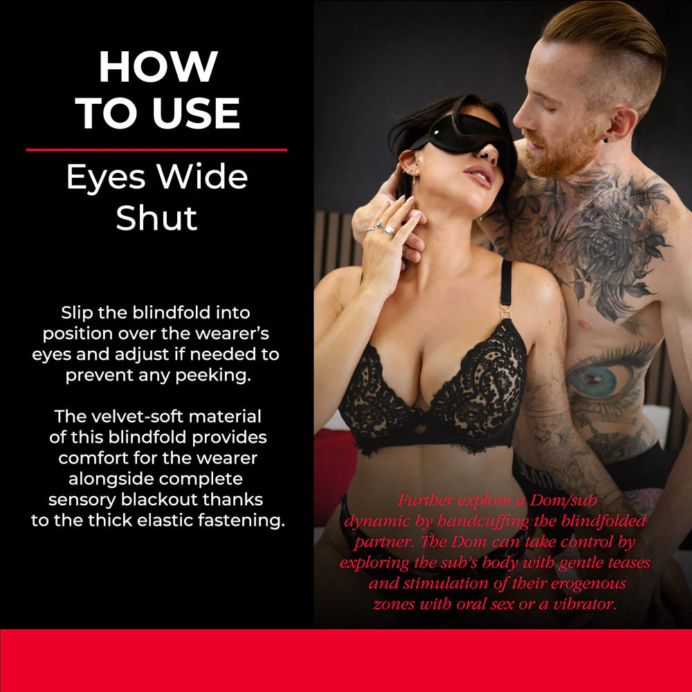 The elastic strap ensures a secure yet flexible fit, keeping the blindfold in place during your most passionate moments. Perfect for both beginners and seasoned explorers, the Eyes Wide Shut blindfold invites you to surrender control, amplifying every sound, touch, and whisper for an experience that’s as thrilling as it is unforgettable.