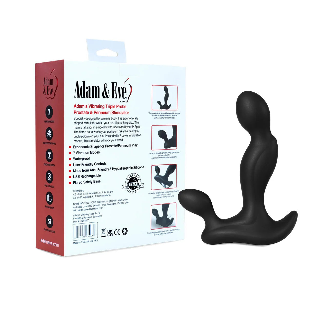 Store any and all sex toys without letting them make contact with each other. A cool, dark, and dry place like your nightstand is the perfect place to store your Adam's Vibrating Triple Probe when not in use.