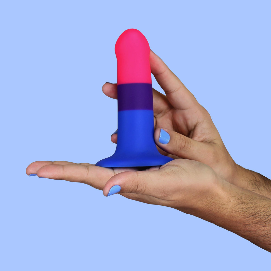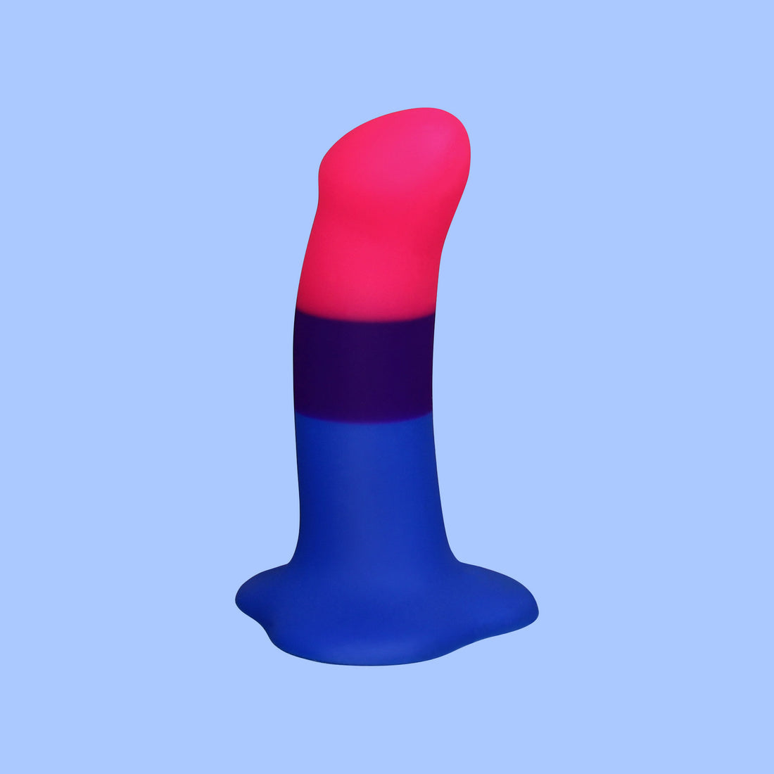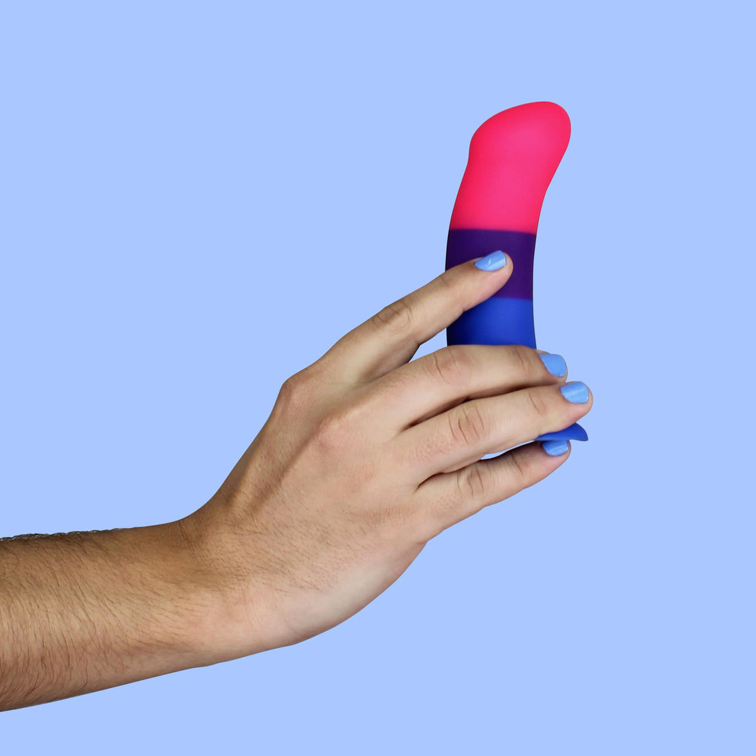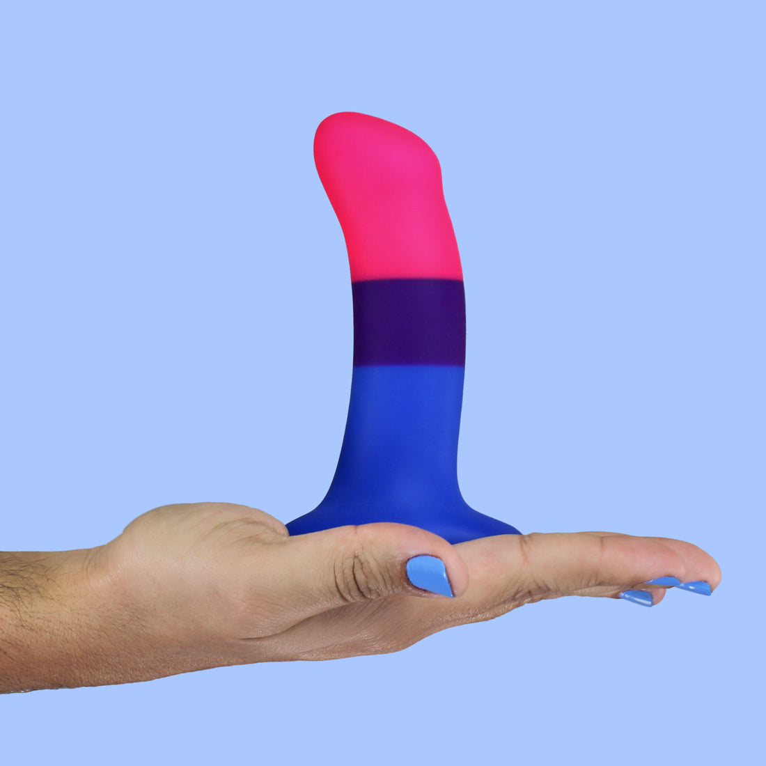 A limited-edition dildo with bisexual pride Ideally sized & shaped for riding & grinding Slight curve strokes the G-spot or prostate Thin, harness-friendly base lets you get super close Suction base sticks to any smooth surface Special edition in colors of...