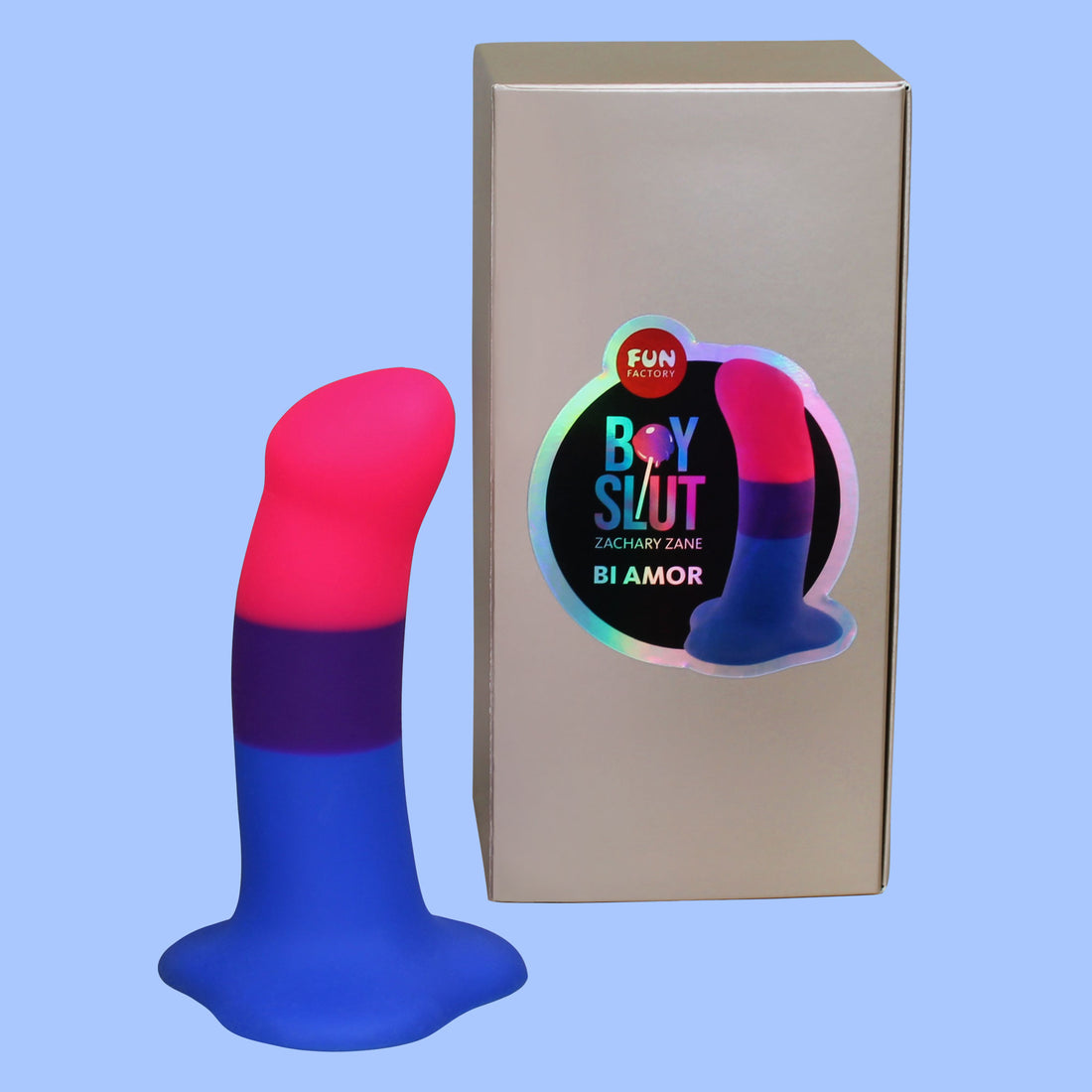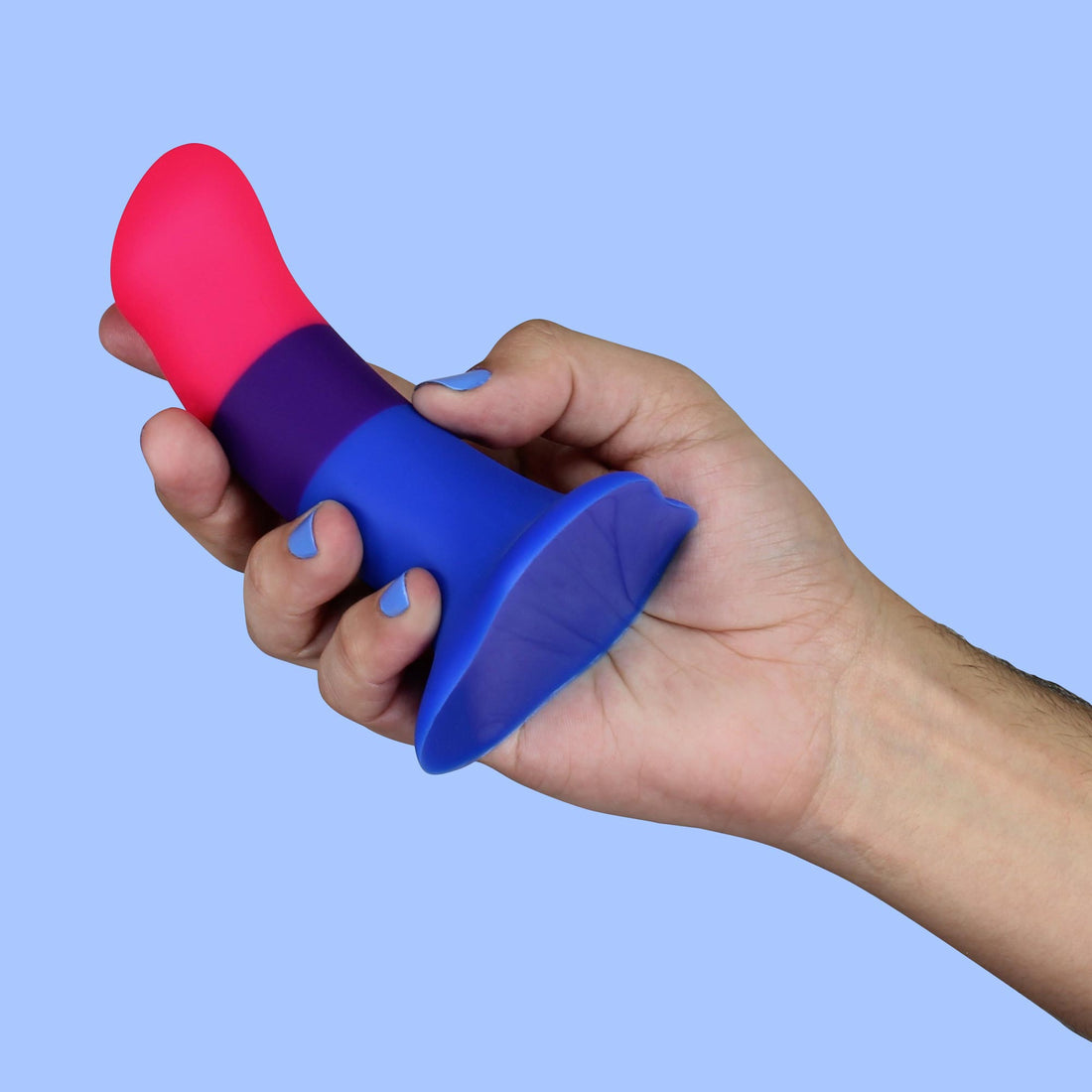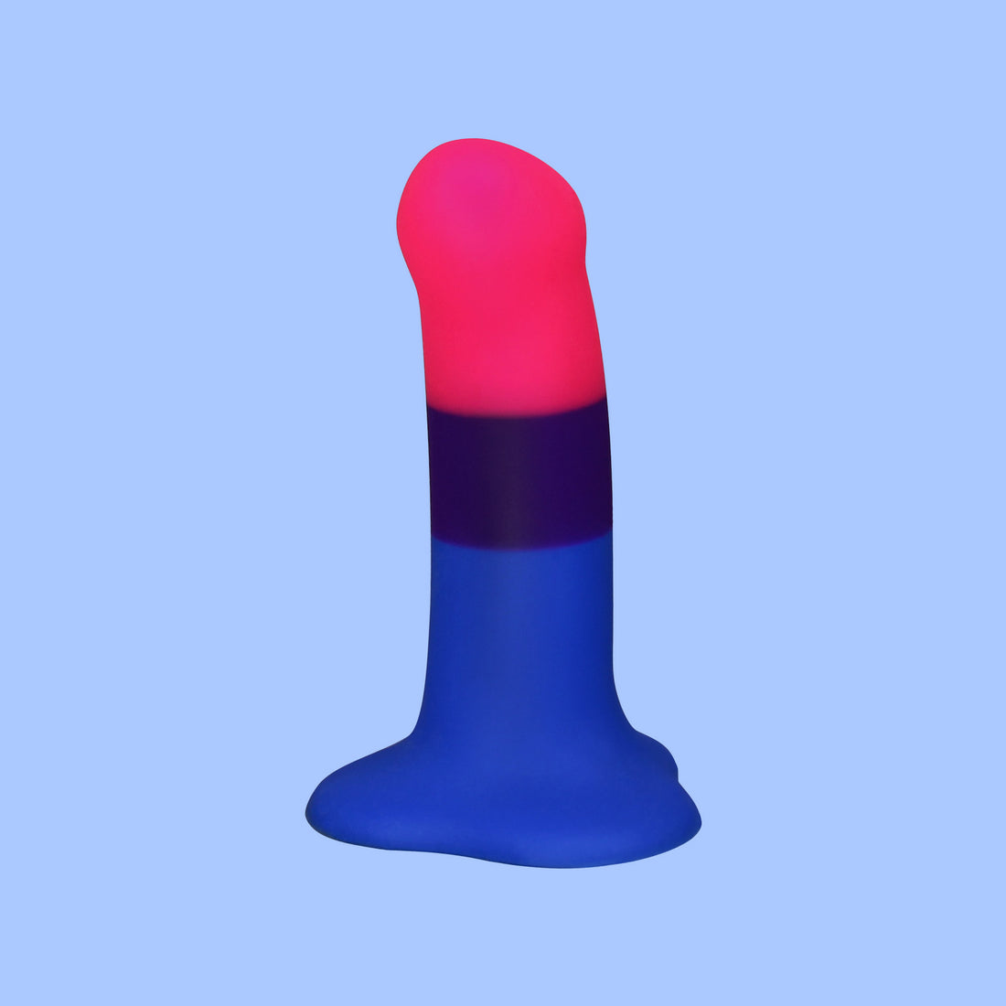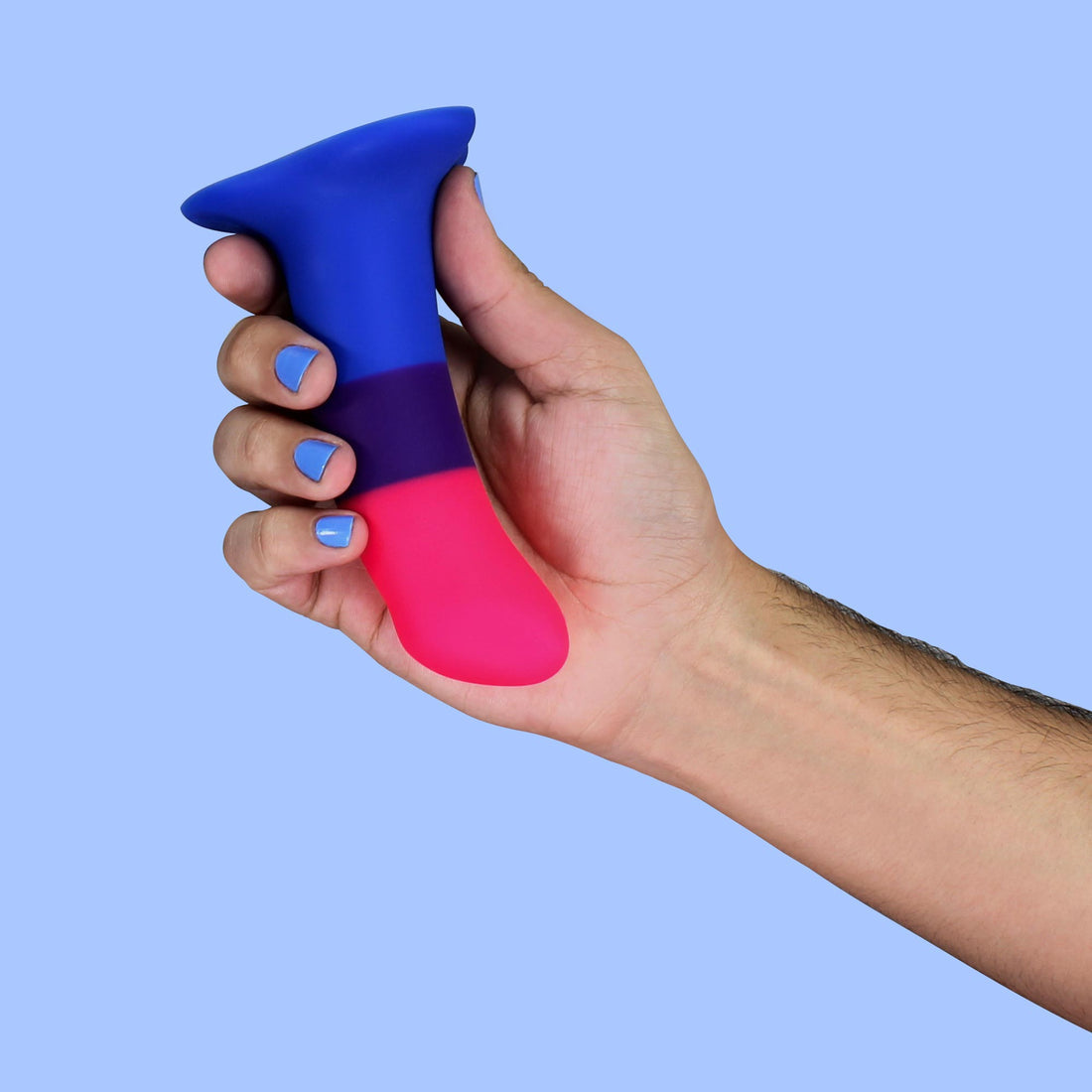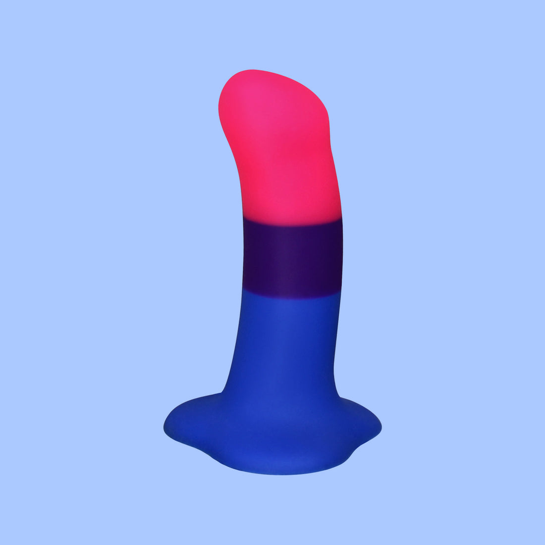 A limited-edition dildo with bisexual pride Ideally sized & shaped for riding & grinding Slight curve strokes the G-spot or prostate Thin, harness-friendly base lets you get super close Suction base sticks to any smooth surface Special edition in colors of...