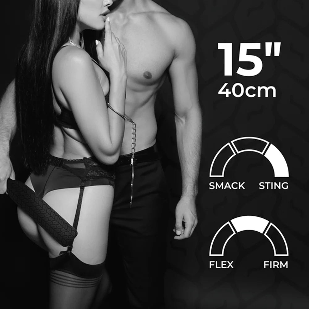 Discover an exciting twist on impact play with the Sei Mio Tread Carefully Tyre Textured Spanking Paddle, featuring a unique tire tread texture that delivers intense, satisfying sensations. Every swing leaves a distinct imprint, creating a thrilling visual treat on the skin that amplifies the experience. The tread pattern on the handle provides a secure, slip-free grip for full control, even during the most passionate play. Made from premium silicone, this paddle is not only durable but also incredibly easy to clean and dry, making it a perfect blend of style, sensation, and practicality.