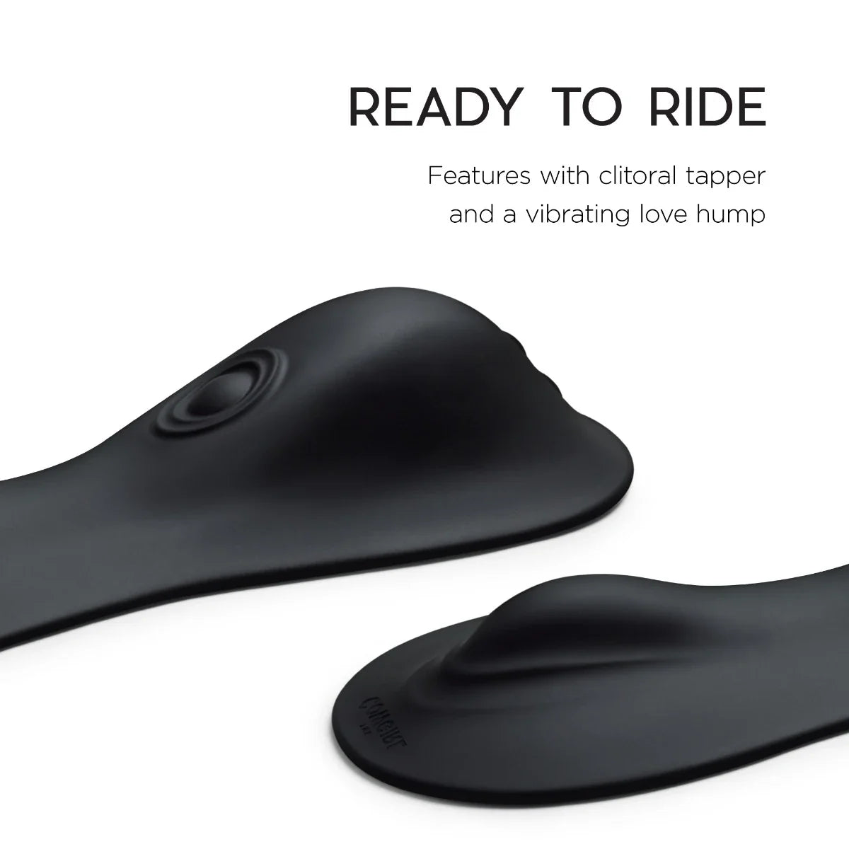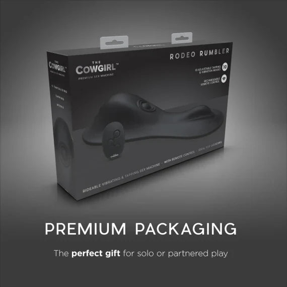 Introducing The Cowgirl Rodeo Rumbler, a rideable vibrating and tapping clitoral sex machine. This powerful and discreet device allows for hands-free grinding, enabling users to fully immerse themselves in the experience. The clitoral tapper provides a teasing sensation that delivers deeper satisfaction, transitioning from gentle taps to thrilling bursts.
